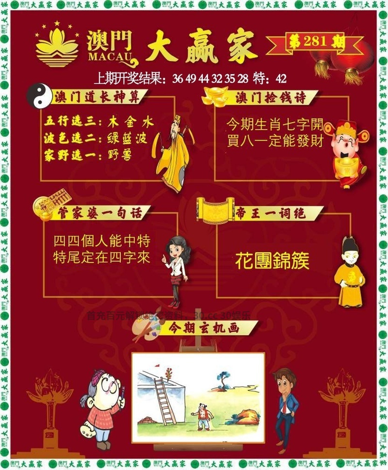 281期:琴棋书画【琴棋画】开:羊47准 |